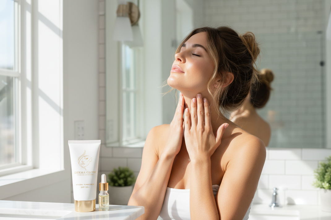 Celebrate your glowing transformation! Your skin has adapted to the Derma Glow regimen, revealing a luminous, healthy complexion.